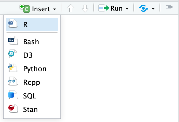 Chunk: A piece of R code that is included in your document. It looks like this: